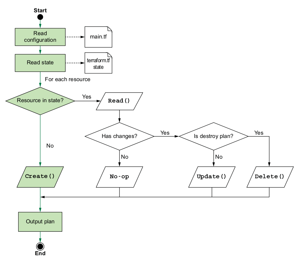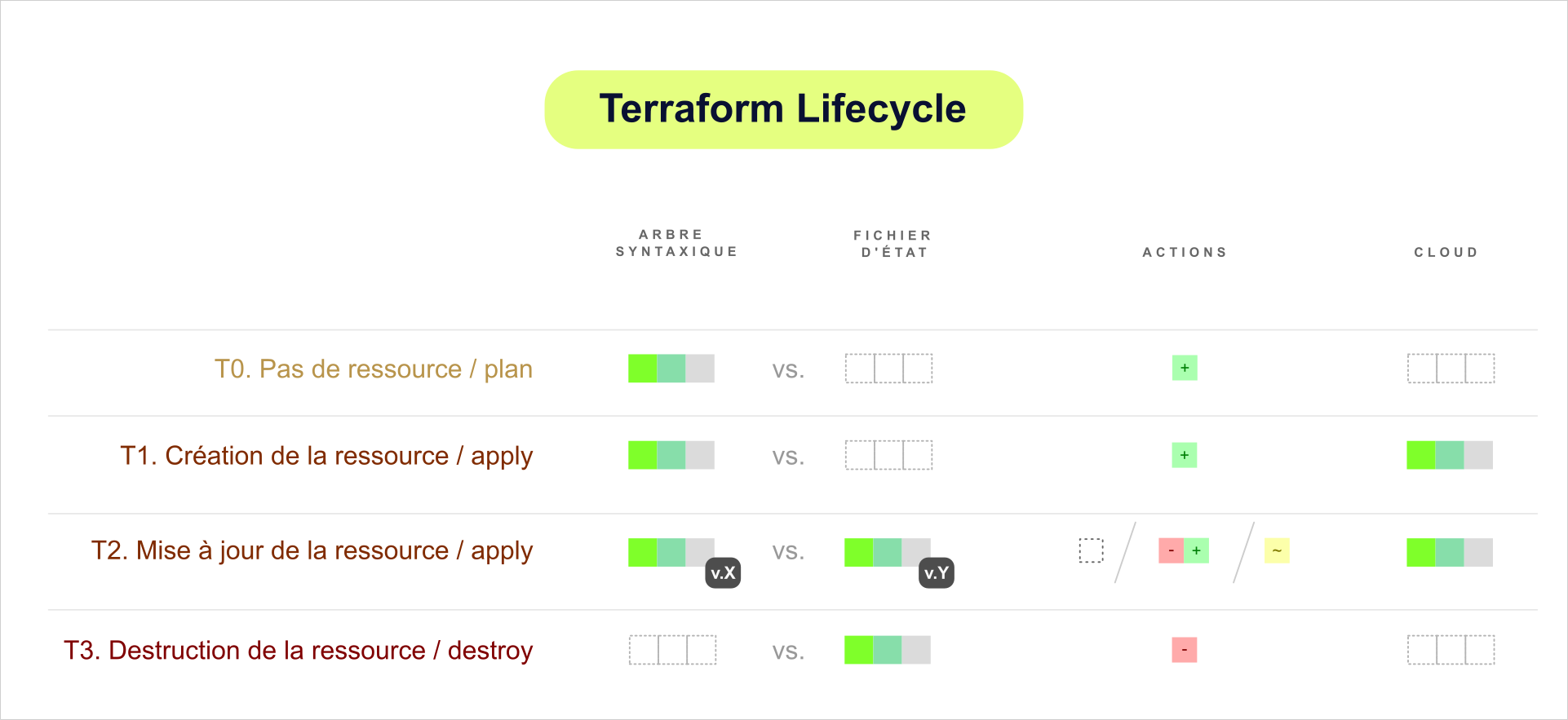 Elle prend en compte l’état et les dépendances entre ressources à générer pour orchestrer les actions à entreprendre.